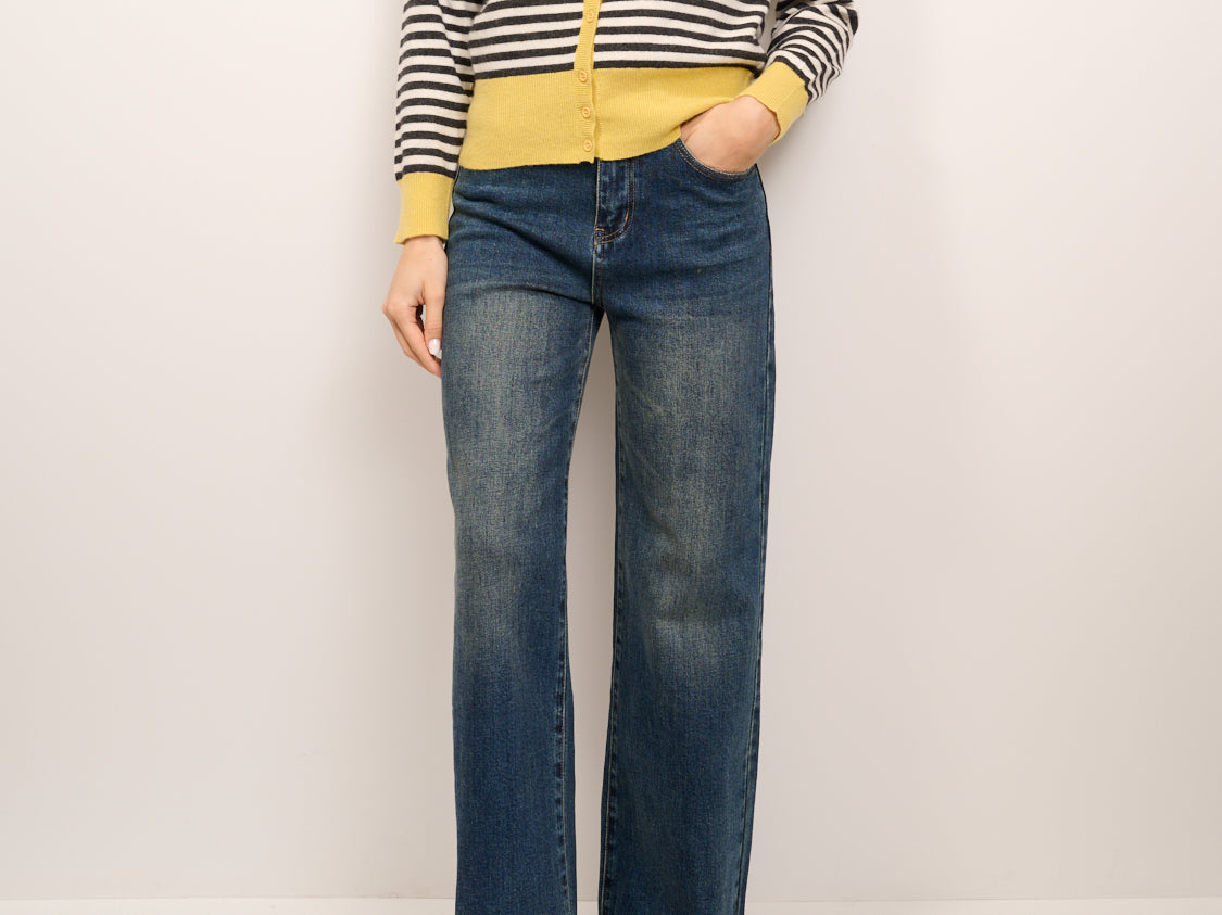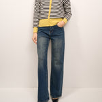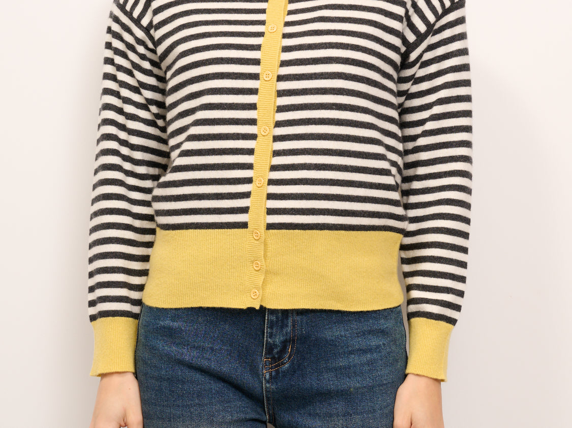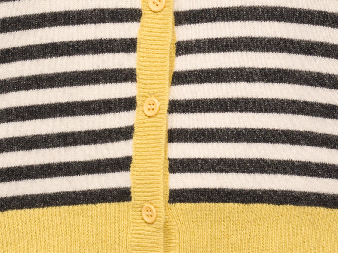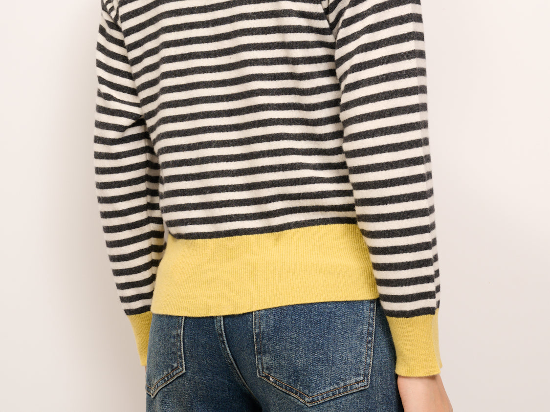 IDENTITY -MAGLIA BOTTONI GIROCOLLO RIGATA - GIALLO/PANNA/ANTRACITE