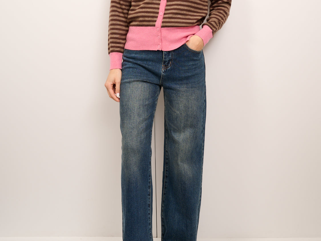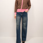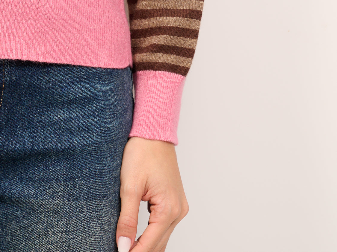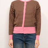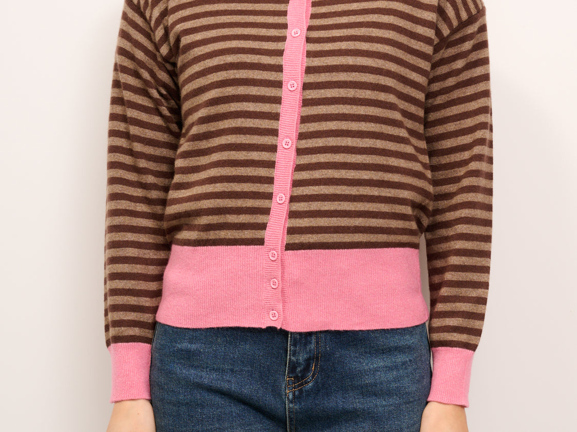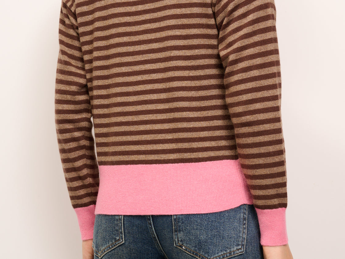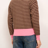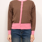 IDENTITY -MAGLIA BOTTONI GIROCOLLO RIGATA - ROSA/MORO/CASTAGNA