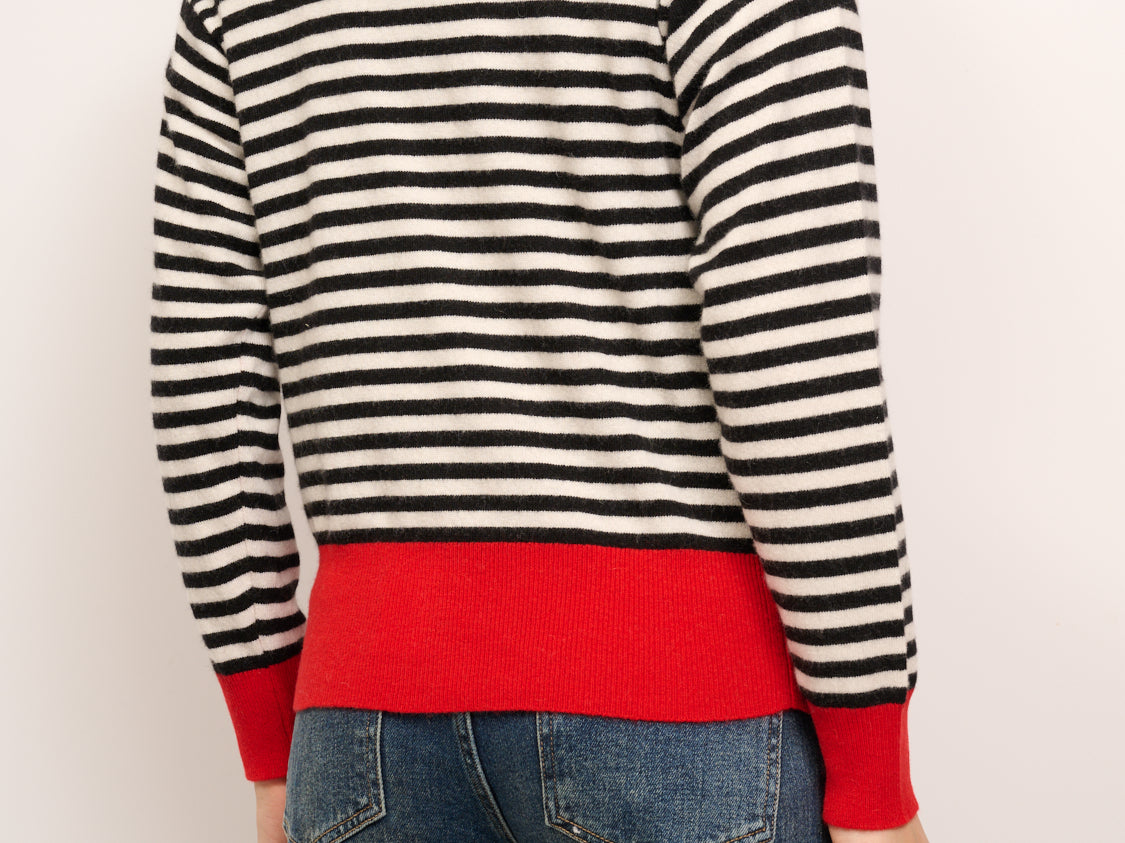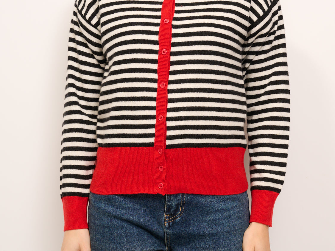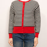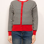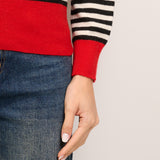 IDENTITY -MAGLIA BOTTONI GIROCOLLO RIGATA - ROSSO/PANNA/NERO