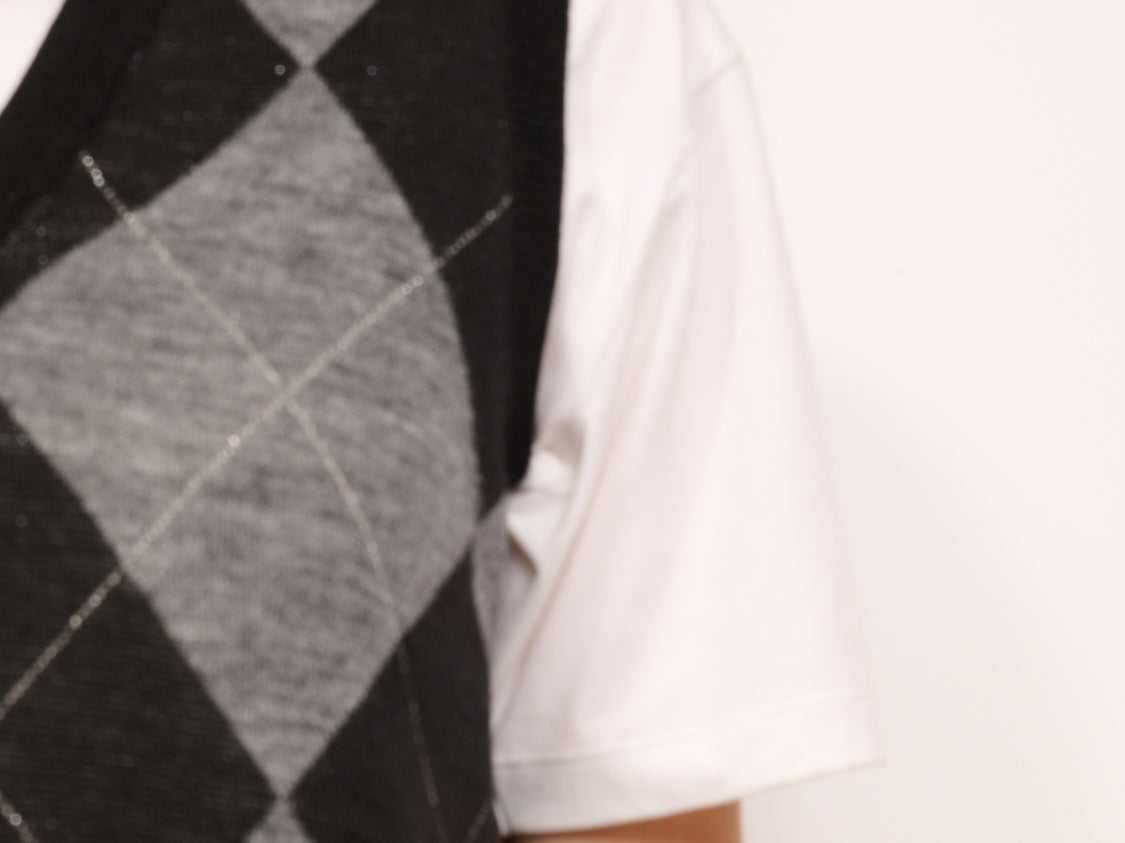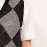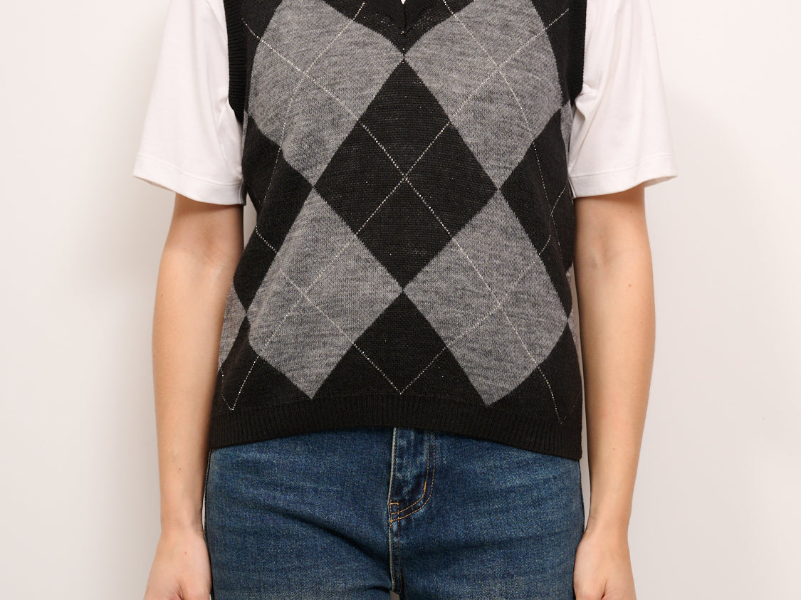 IDENTITY - MAGLIA GILET ROMBI - GRIGIO/NERO
