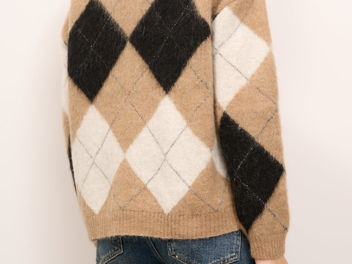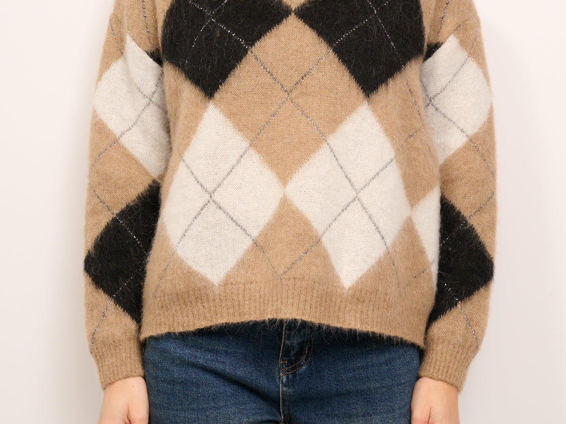 IDENTITY - MAGLIA ROMBI GIROCOLLO - CAMEL