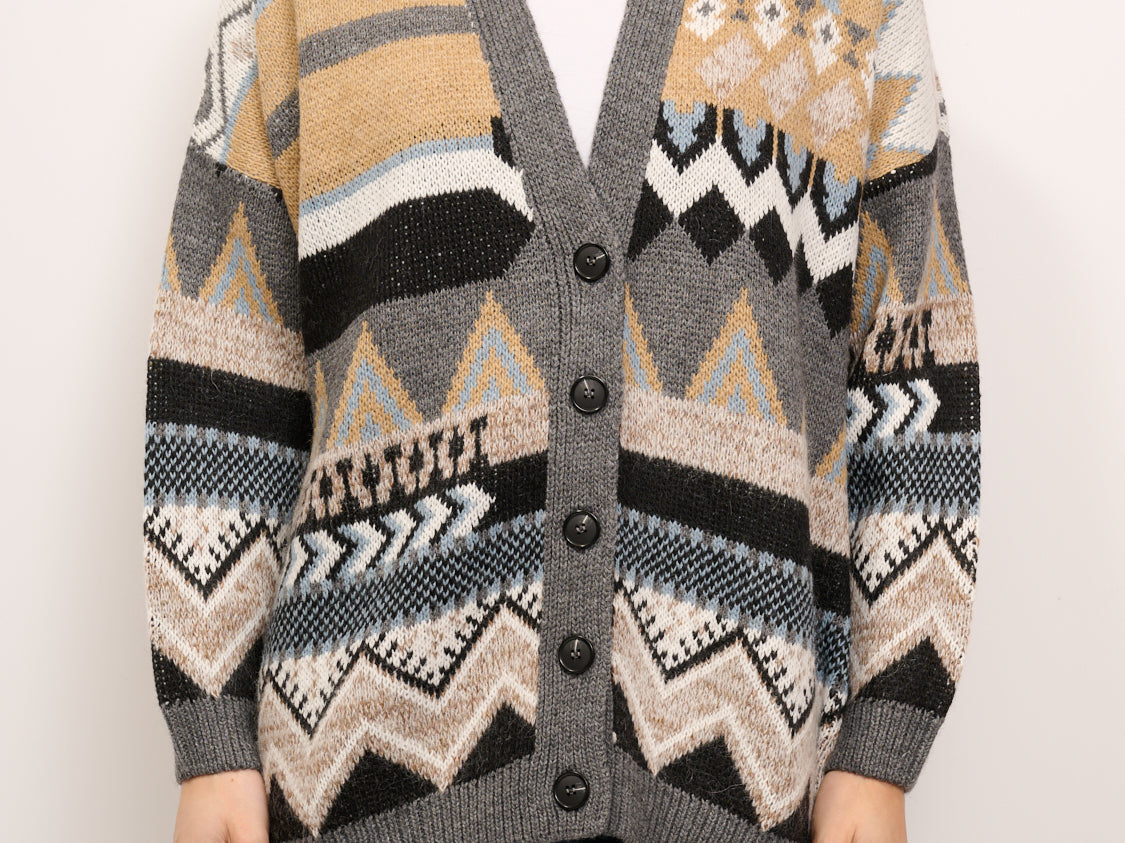 IDENTITY - MAGLIA BOTTONI SCOLLO V FANTASIA - GRIGIO