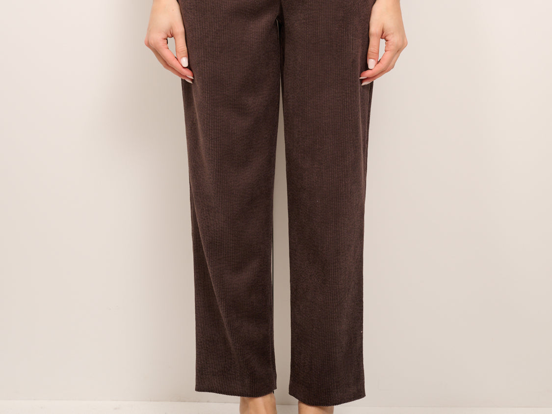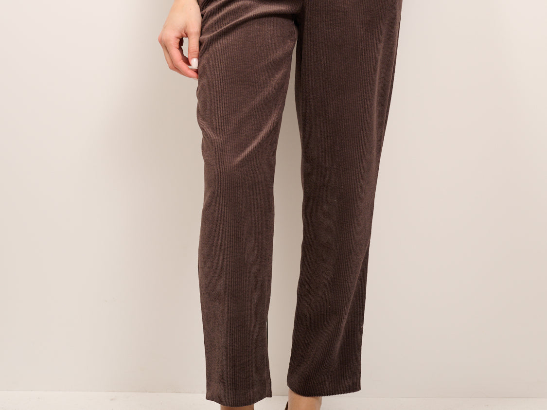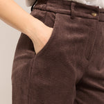 TENSIONE IN - PANTALONE VELLUTO A COSTE BOYFIT - MORO
