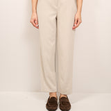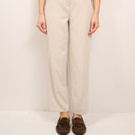 TENSIONE IN - PANTALONE VELLUTO A COSTE BOYFIT - PANNA