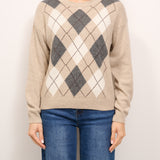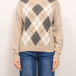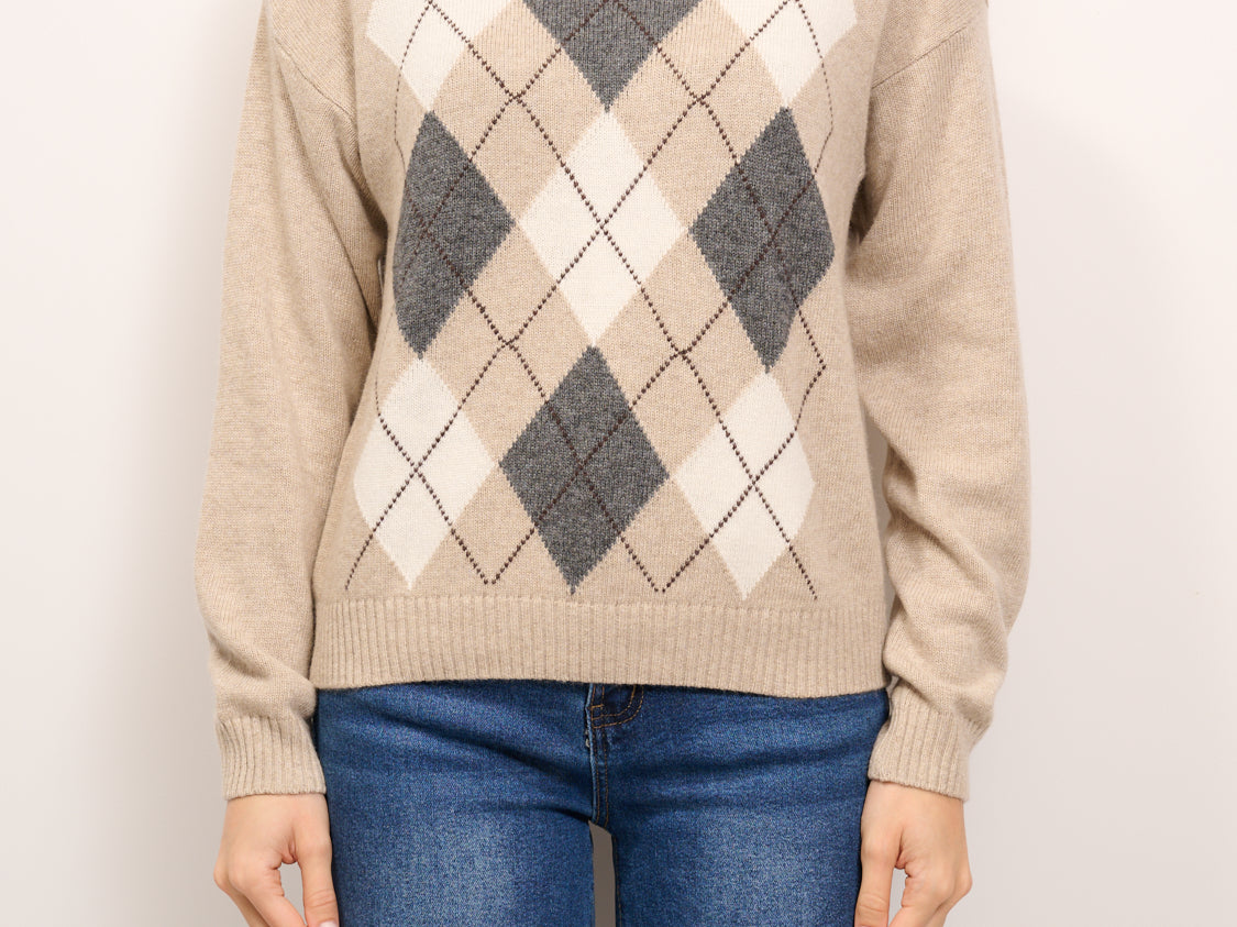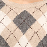 TENSIONE IN - MAGLIA PARICOLLO ROMBI - BEIGE/PANNA/ANTRACITE