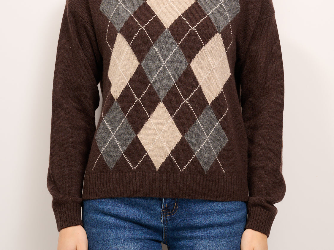 TENSIONE IN - MAGLIA PARICOLLO ROMBI - BURRO/MARRONE/CASHA'