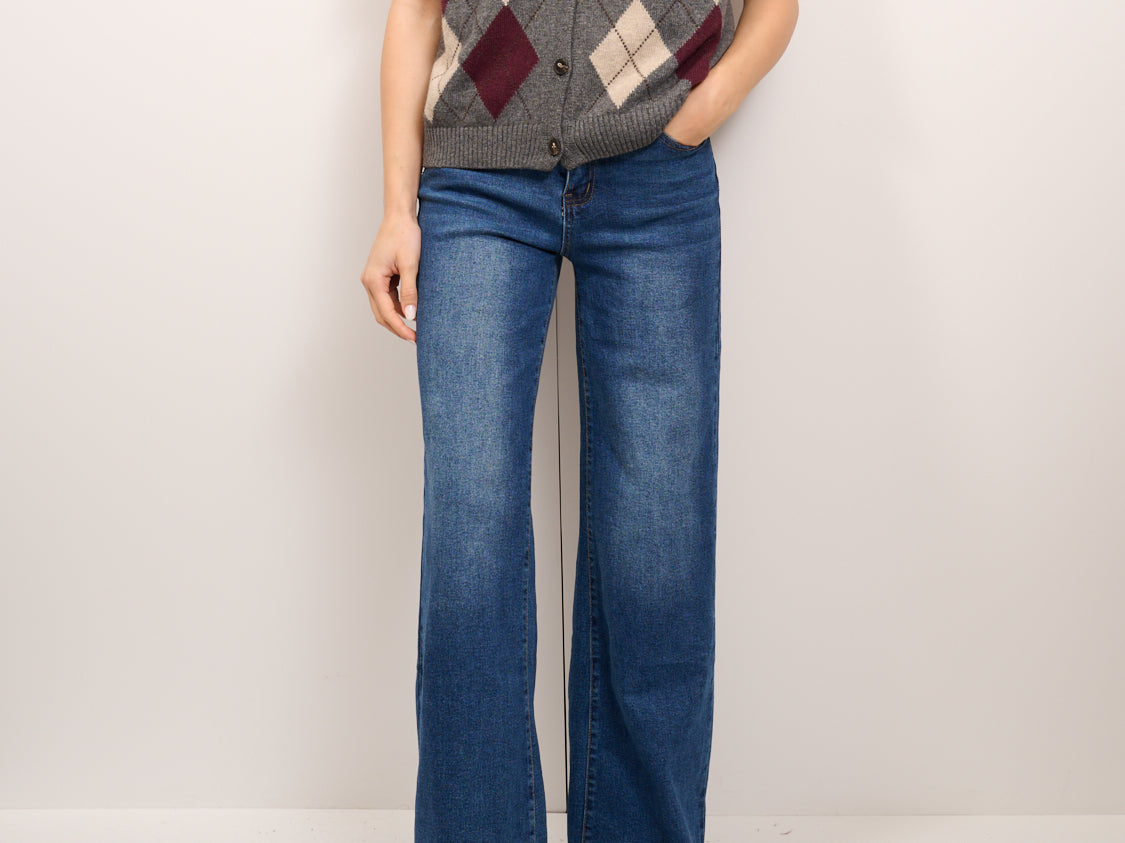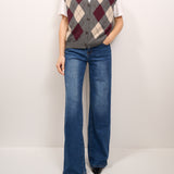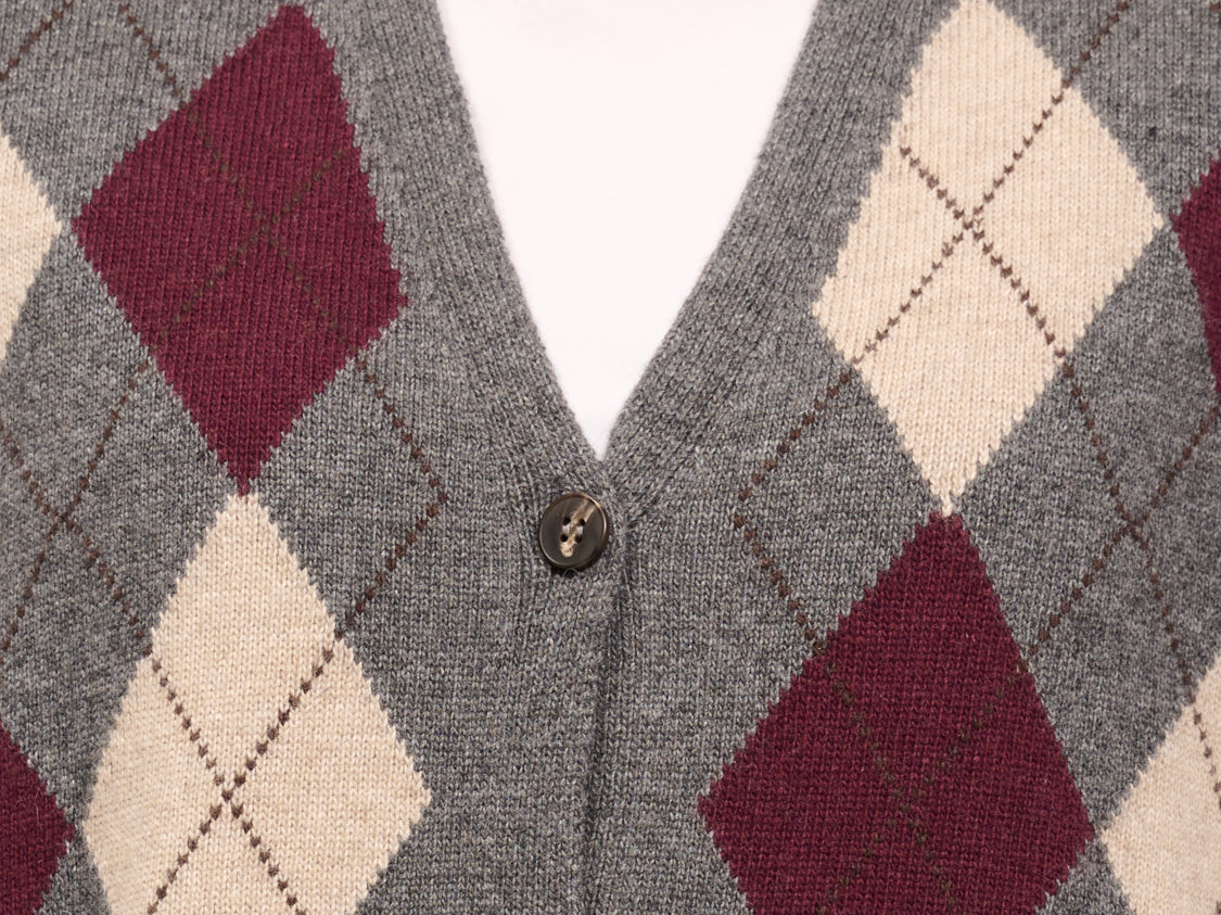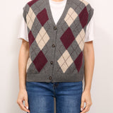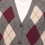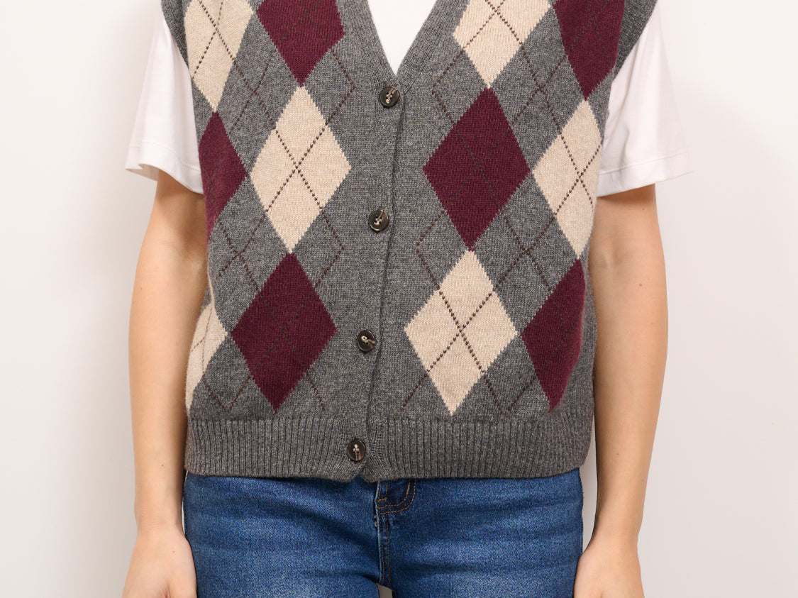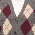 TENSIONE IN - MAGLIA GILET BOTTONI ROMBI - ANTRACITE/MARSALA/BEIGE