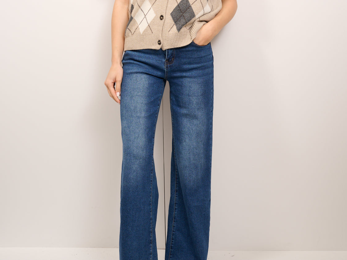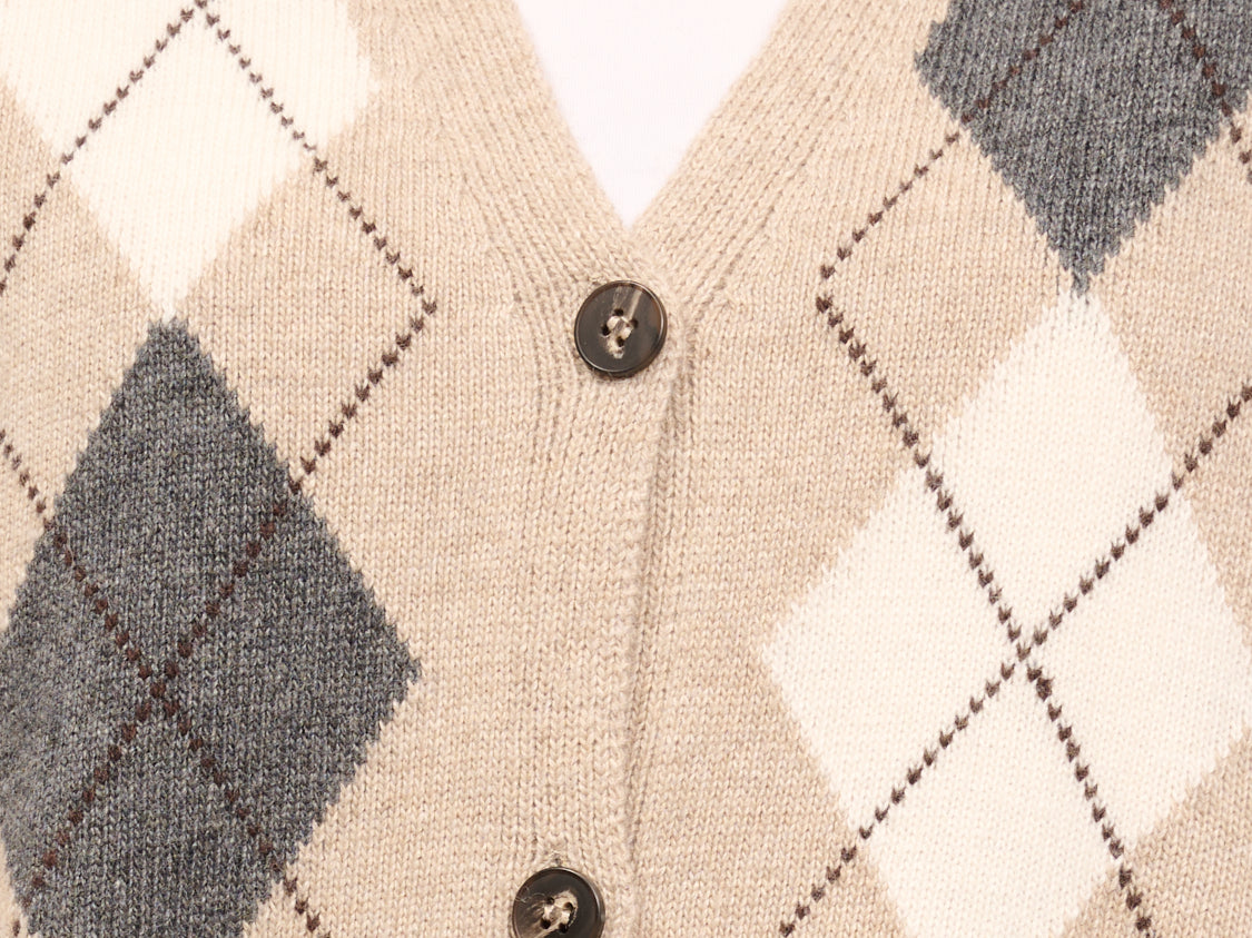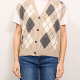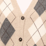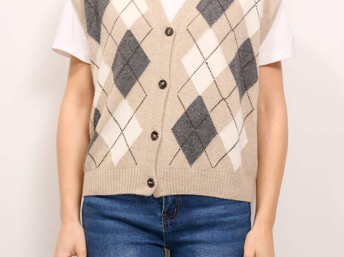 TENSIONE IN - MAGLIA GILET BOTTONI ROMBI - BEIGE/PANNA/ANTRACITE