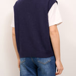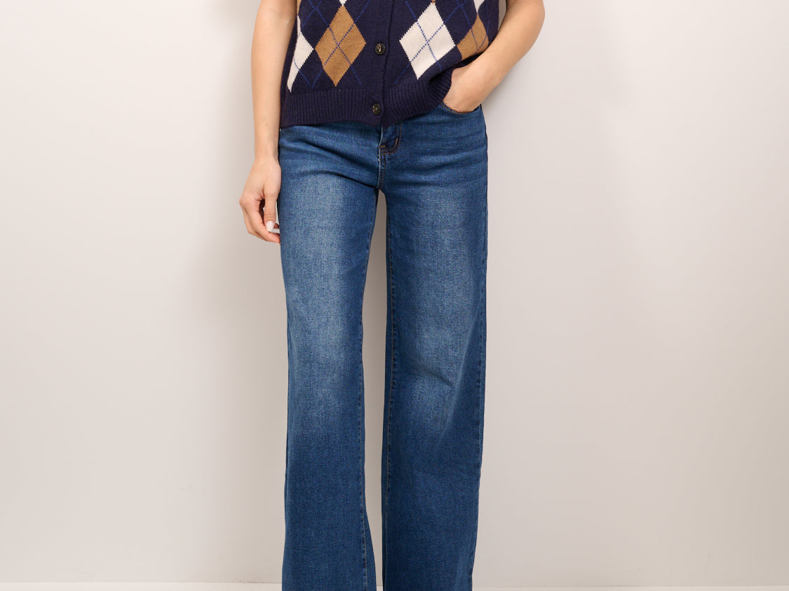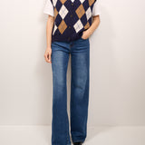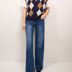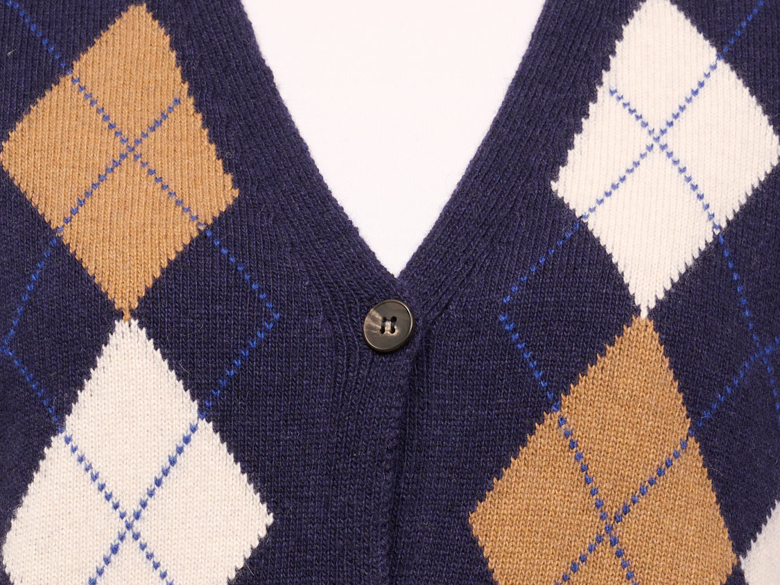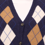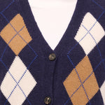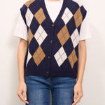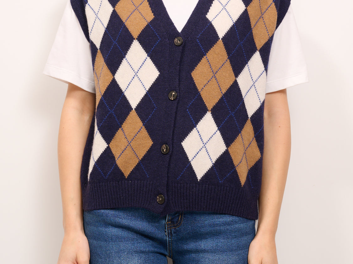 TENSIONE IN - MAGLIA GILET BOTTONI ROMBI - BLU/CAMEL/BIANCO