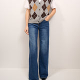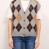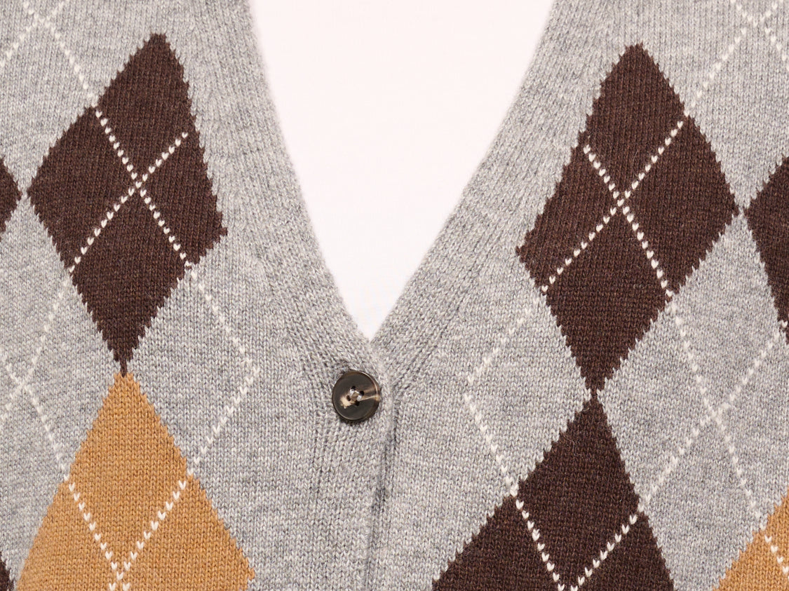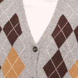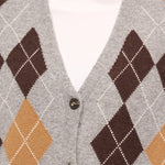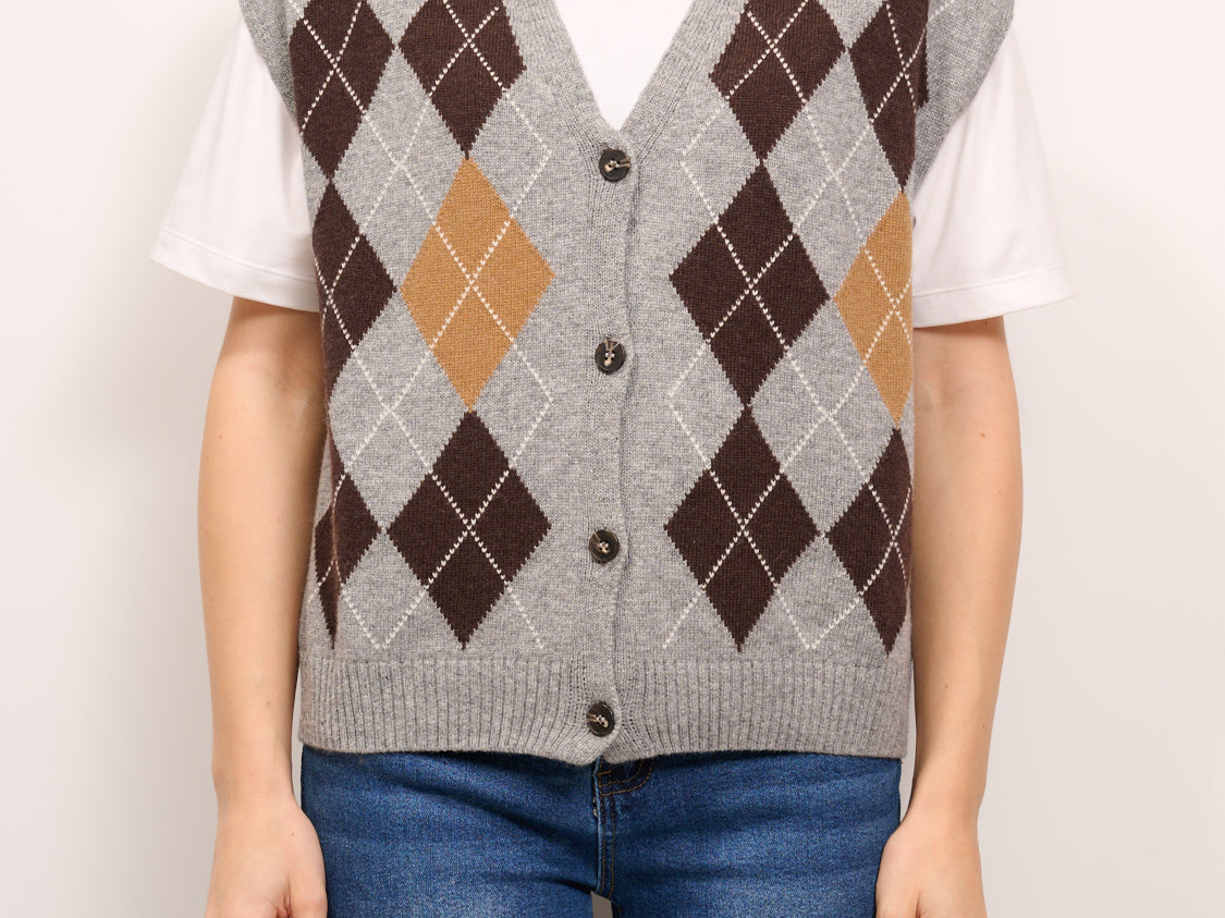 TENSIONE IN - MAGLIA GILET BOTTONI ROMBI - GRIGIO/MORO/CAMEL