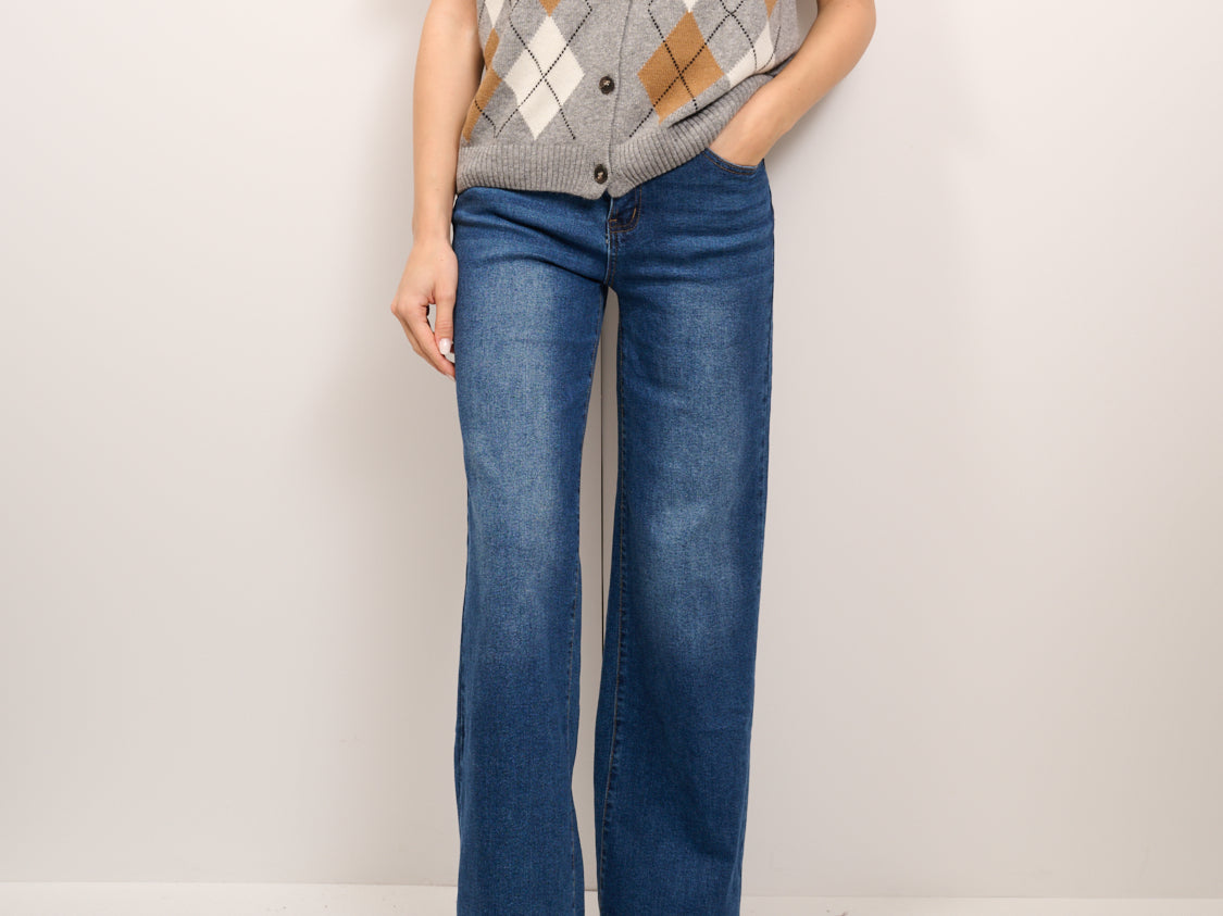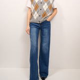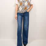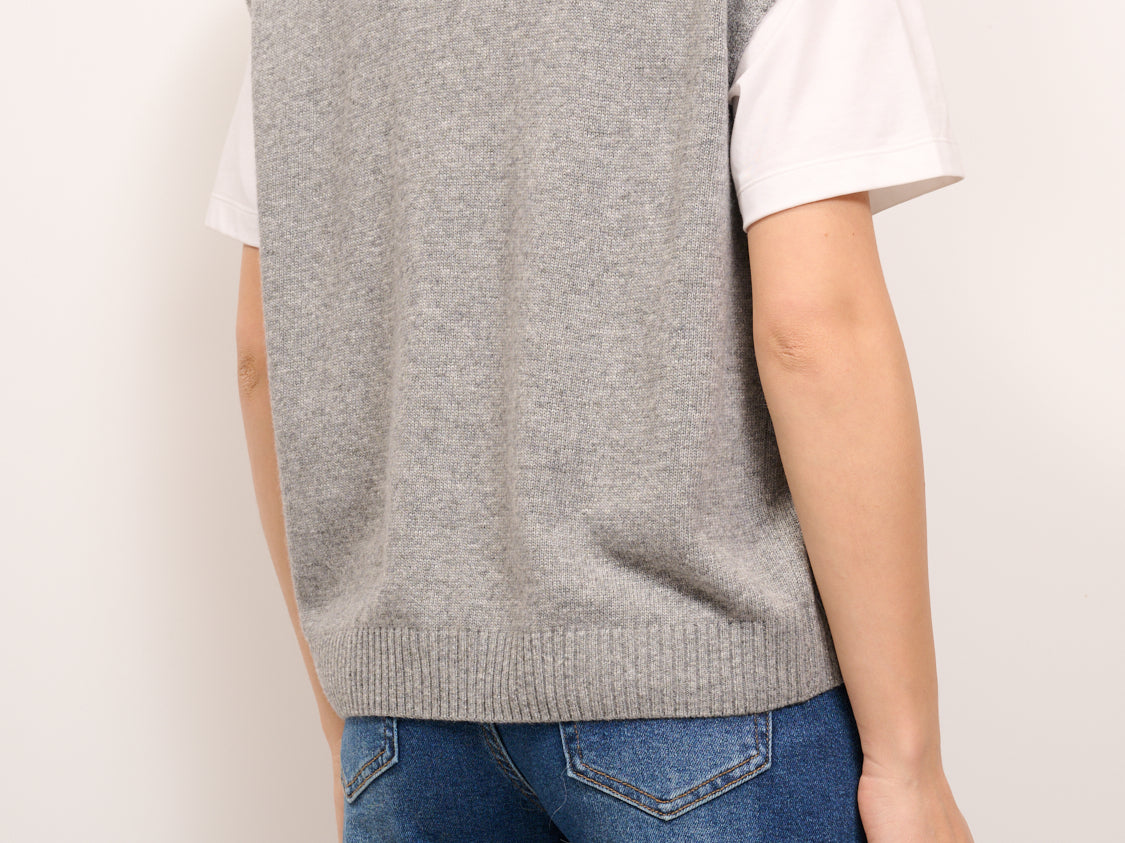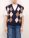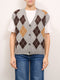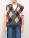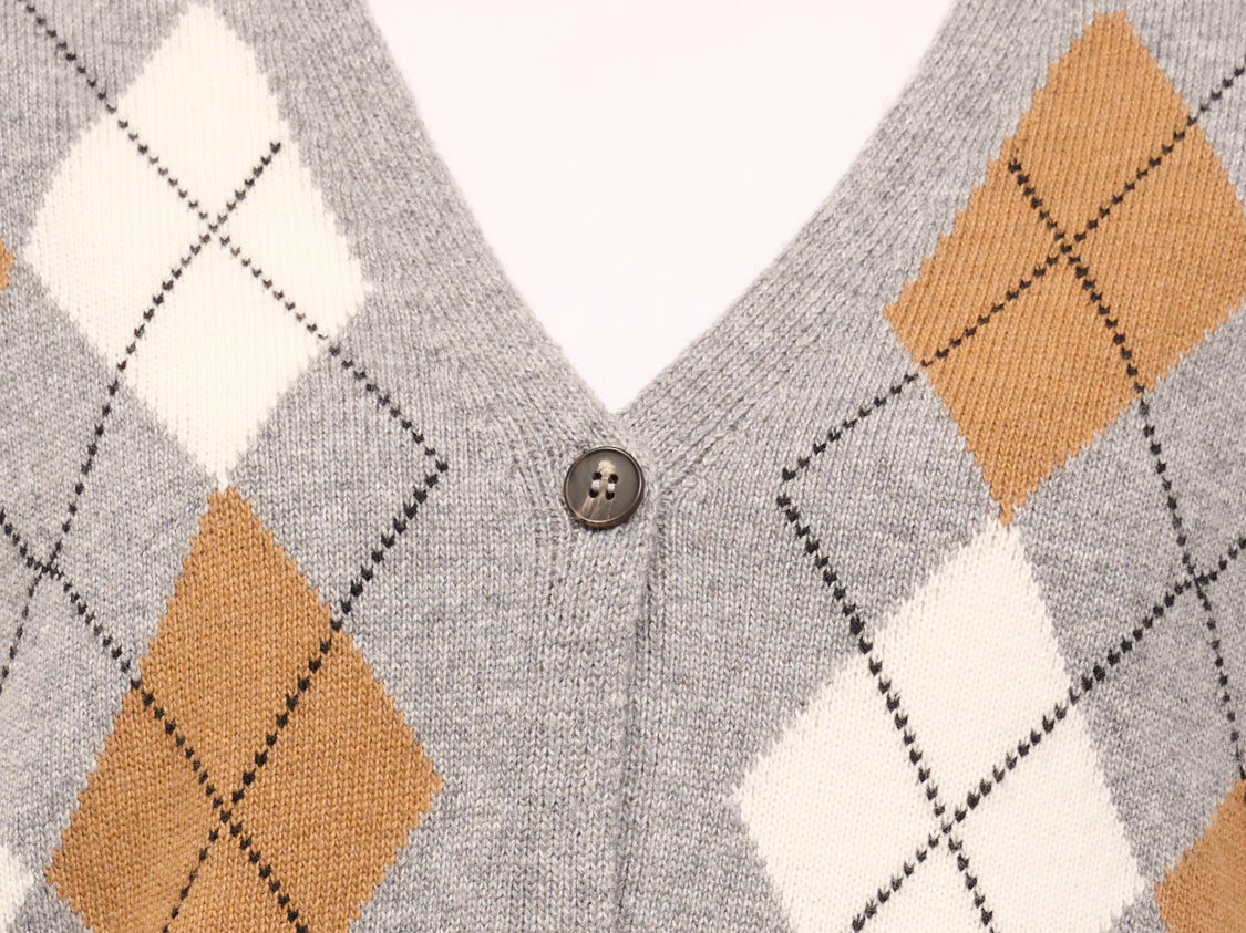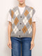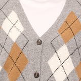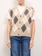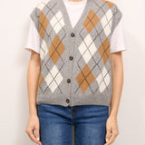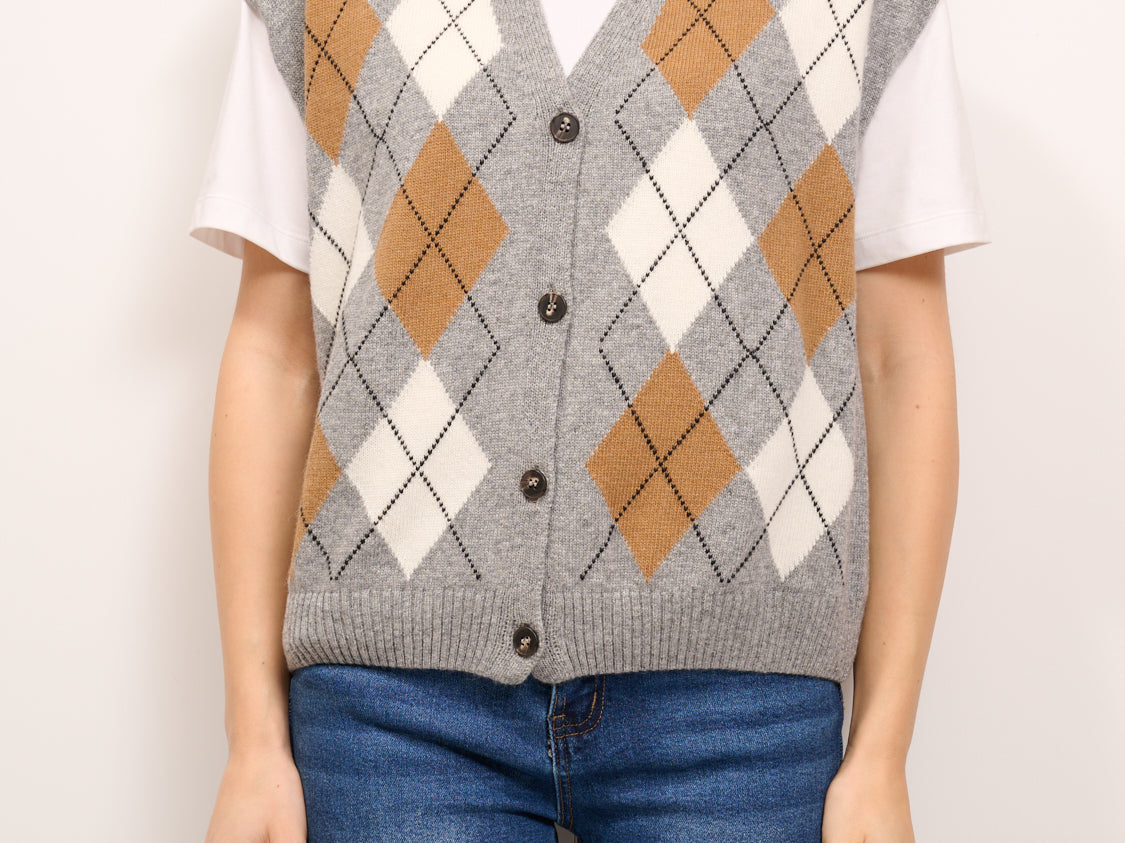 TENSIONE IN - MAGLIA GILET BOTTONI ROMBI - GRIGIO/PANNA/CAMEL