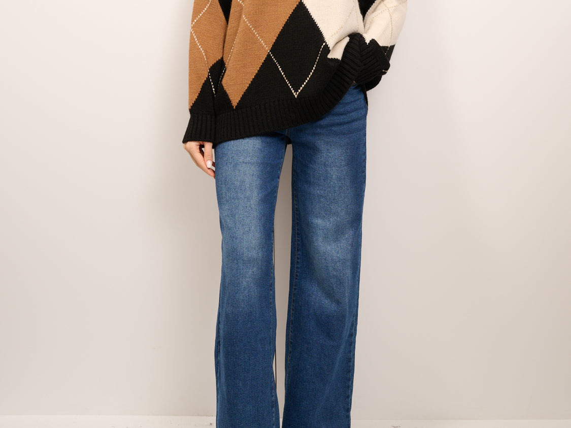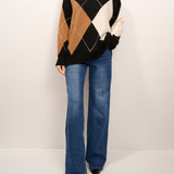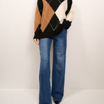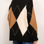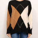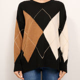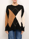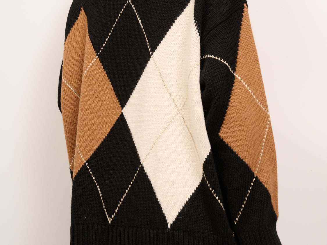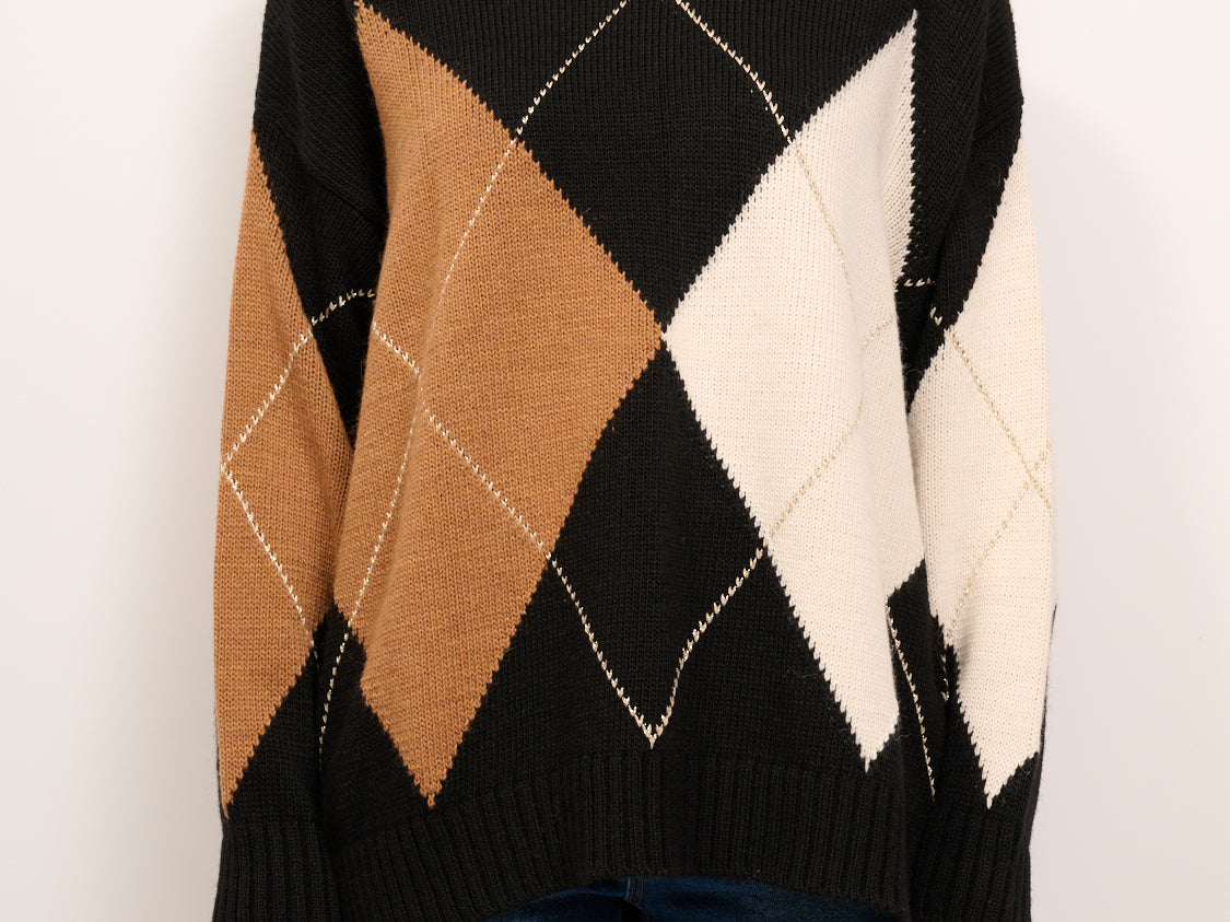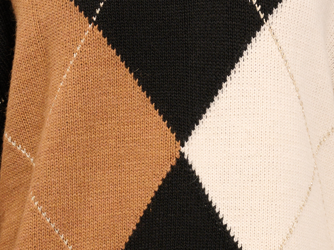 TENSIONE IN - MAGLIA GIROCOLLO ROMBI - NERO/CAMEL/BURRO