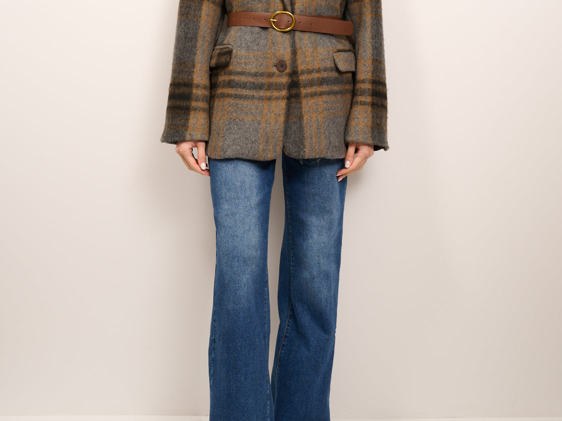 VICOLO - GIACCA QUADRI CINTA - GRIGIO/CAMEL