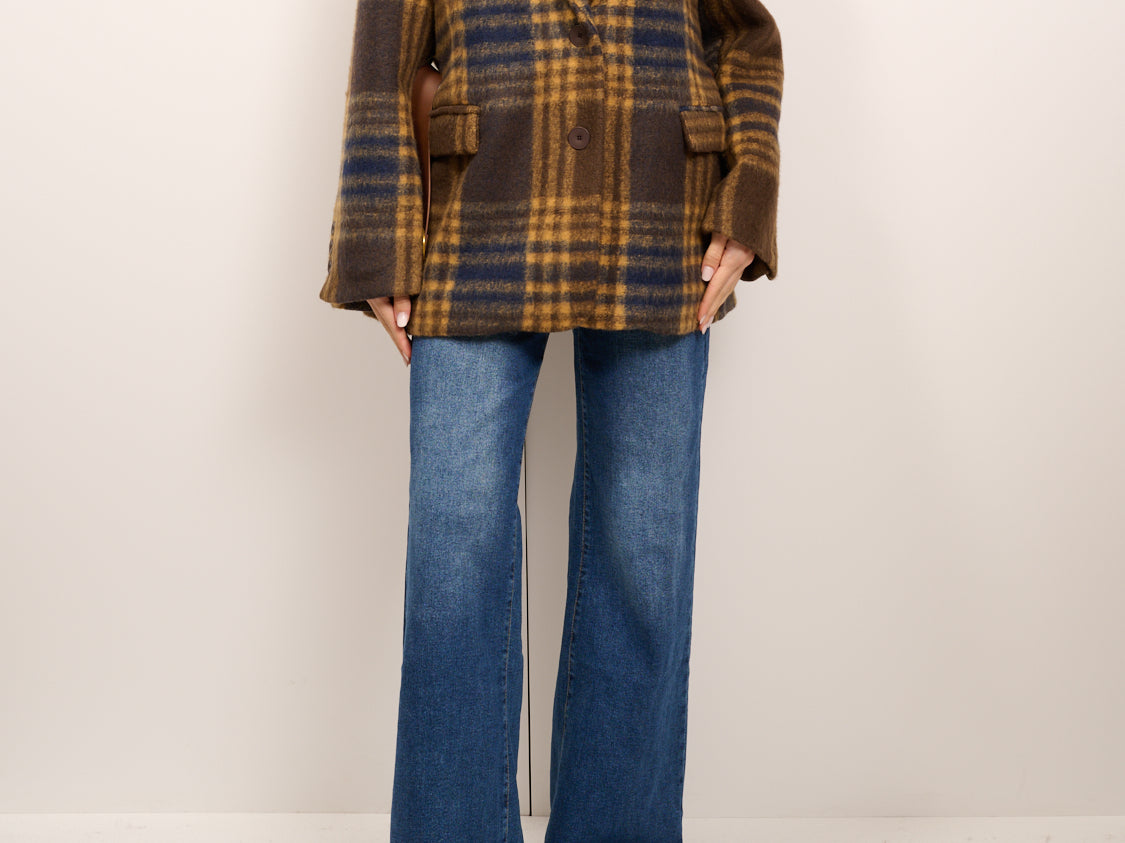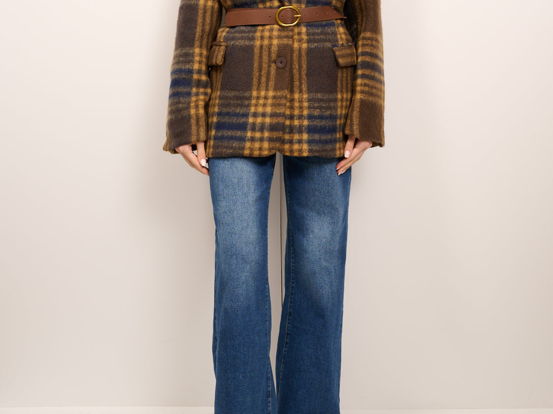 VICOLO - GIACCA QUADRI CINTA - MORO/GIALLO