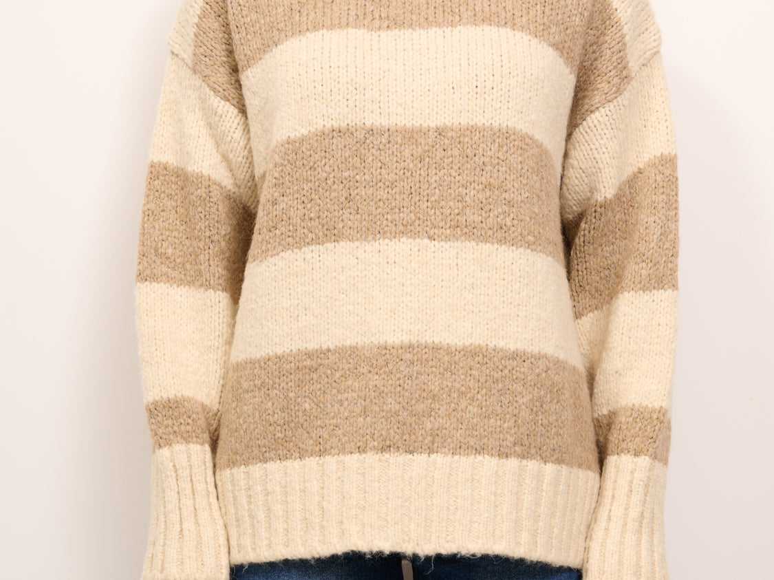 VICOLO -MAGLIA GIROCOLLO RIGHE - BURRO/CASHA'