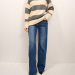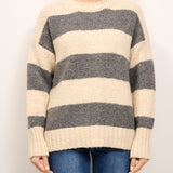 VICOLO -MAGLIA GIROCOLLO RIGHE - BURRO/GRIGIO