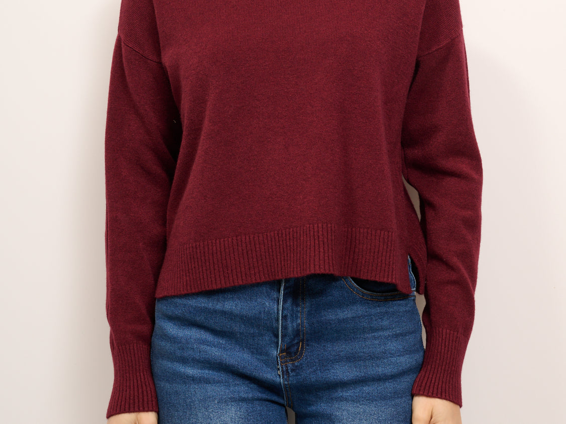 IDENTITY - MAGLIA GIROCOLLO SPACCHETTI - BORDEAUX