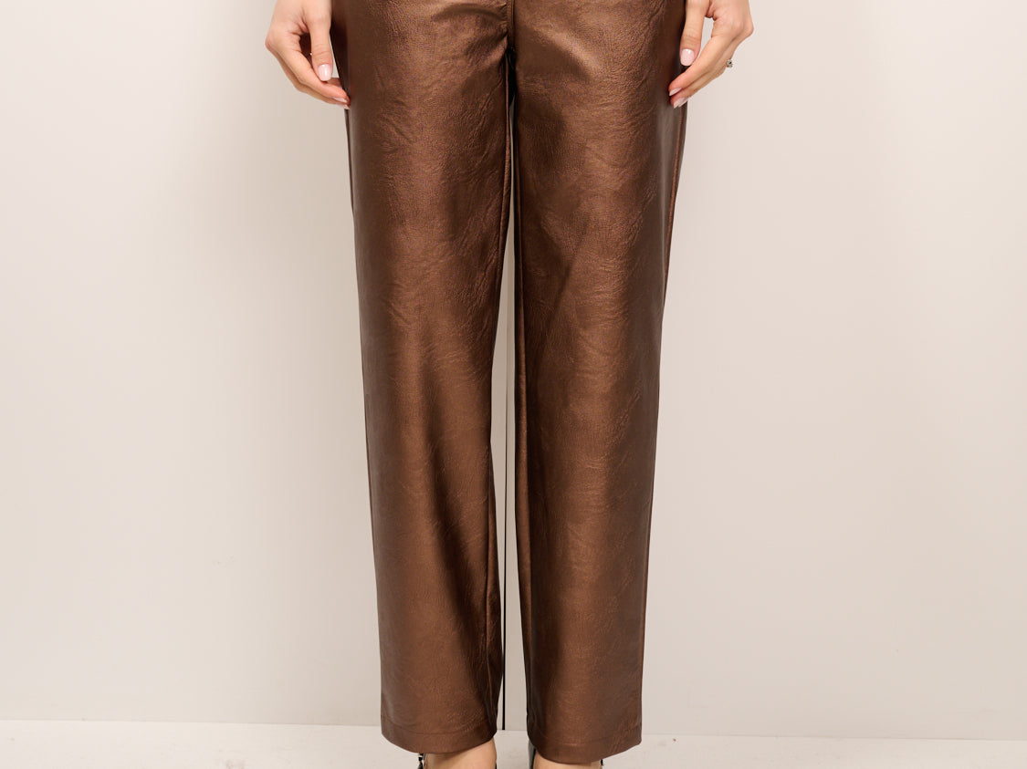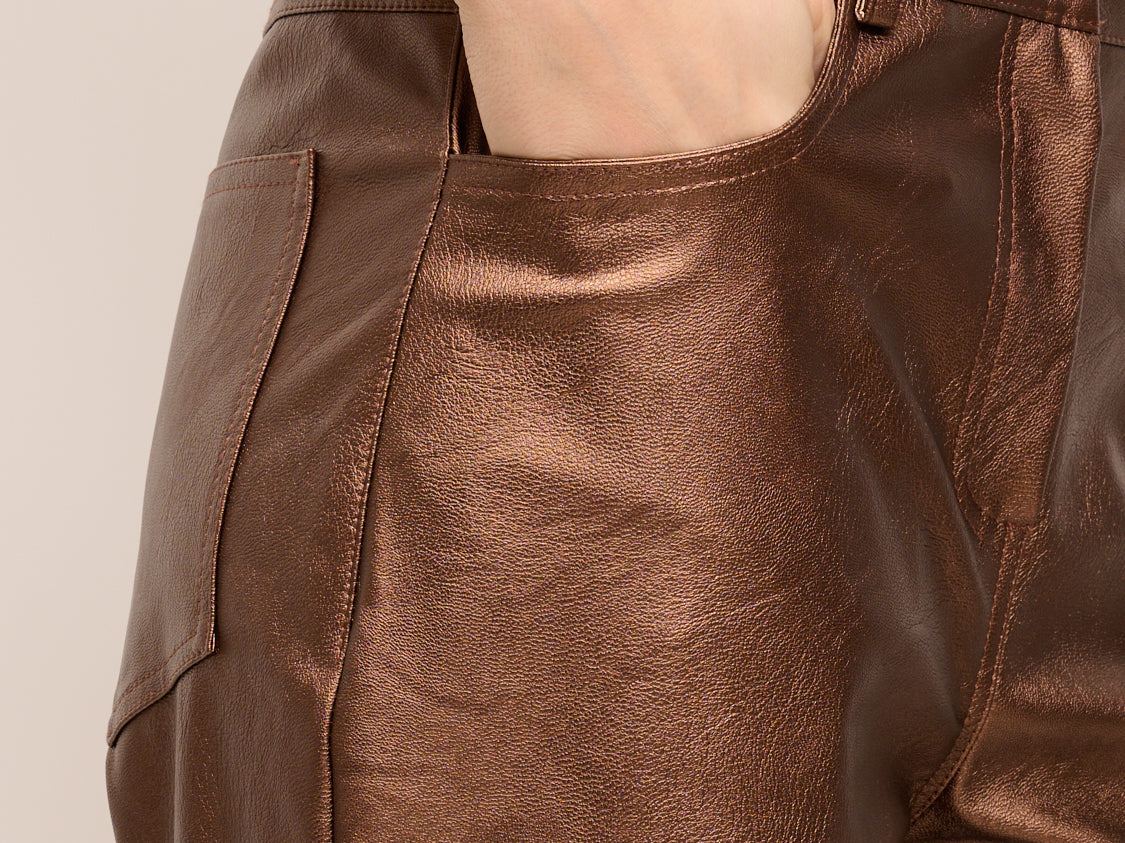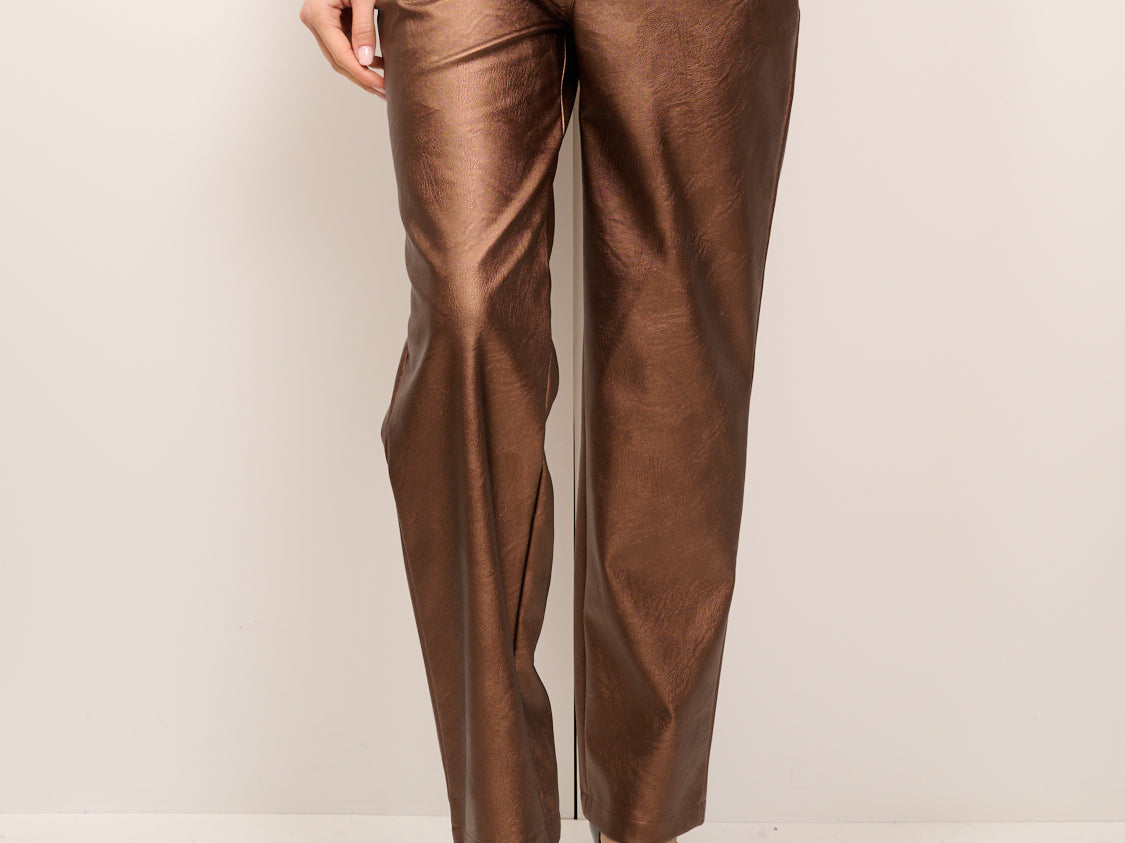 TENSIONE IN - PANTALONE ECOPELLE METALLIZZATO - MORO