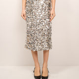 TENSIONE IN - GONNA PAILLETTES MIDI - ARGENTO
