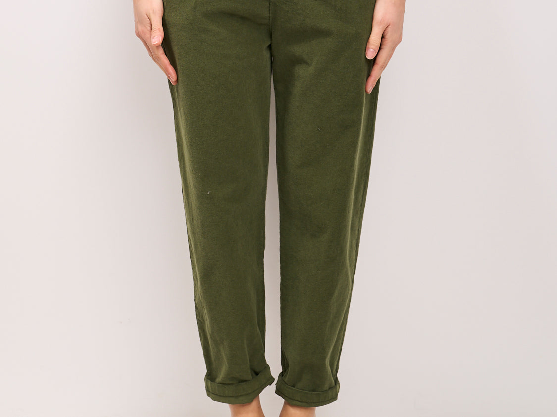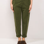 IDENTITY - PANTALONE BOYFIT ELASTICO VELLUTO - MILITARE