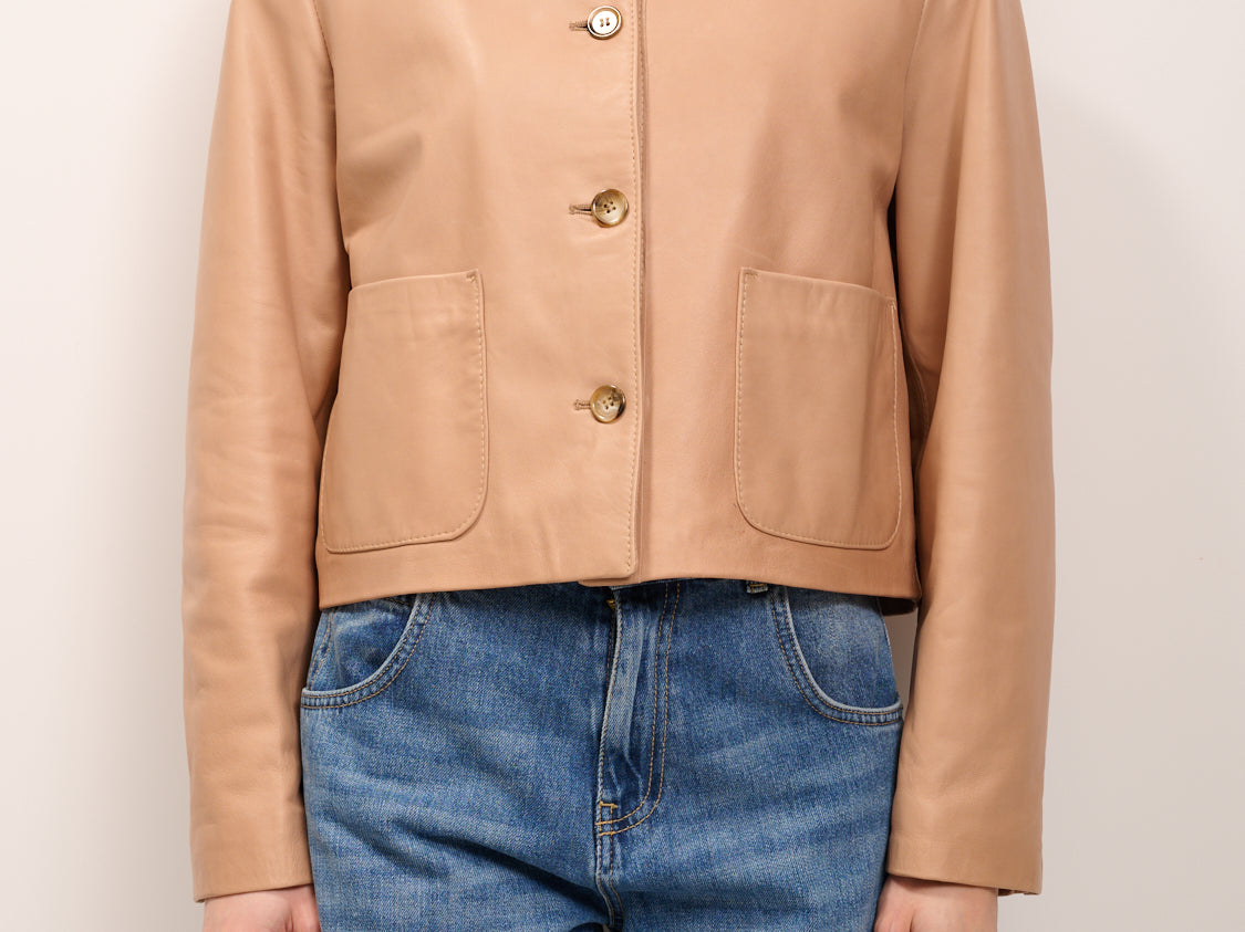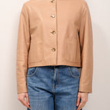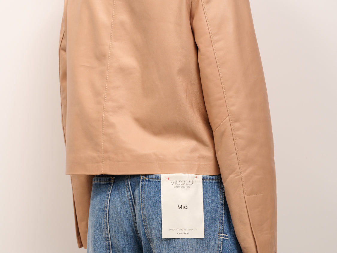 VICOLO - GIACCA COREANA CROPPED VERA PELLE - ROSA