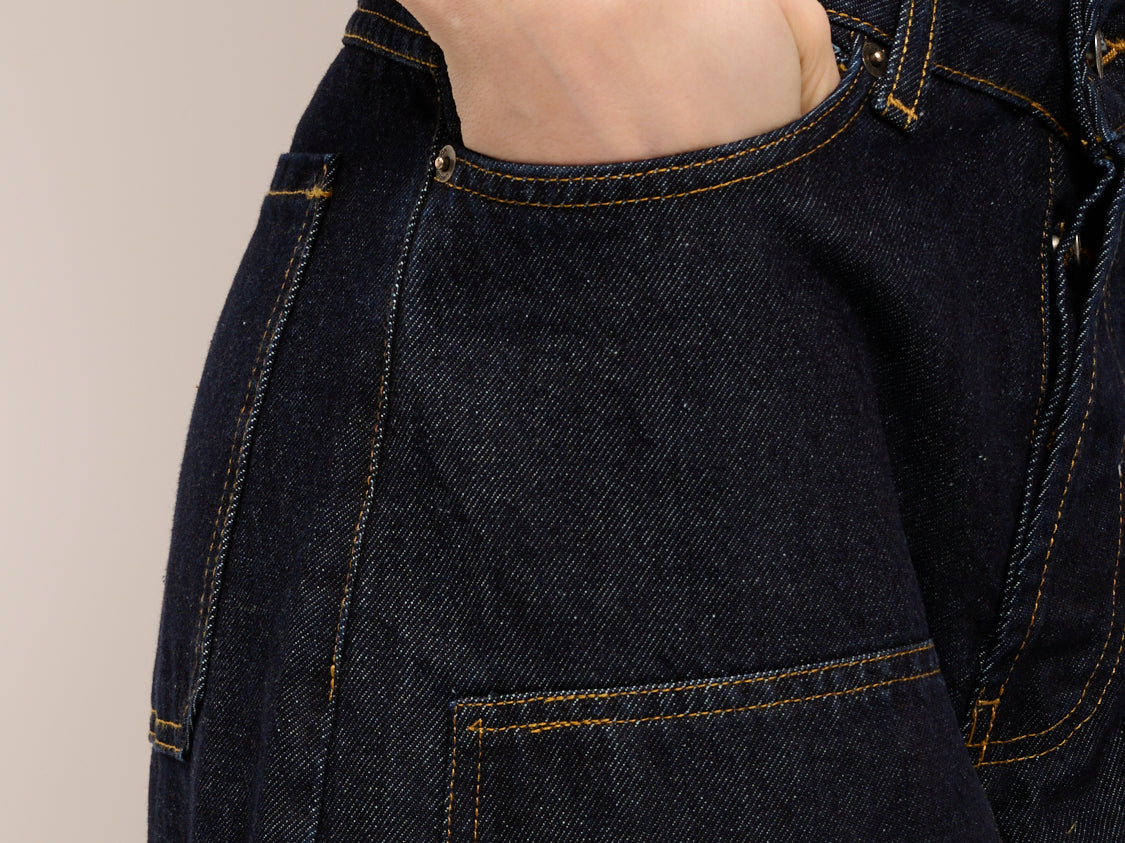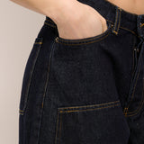 TENSIONE IN - JEANS DENIM BARREL WESTERN CON TAGLI - DENIMBLU