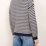 TENSIONE IN - MAGLIA GIROCOLLO RIGHE - BLU/LATTE