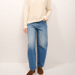 TENSIONE IN - MAGLIA GIROCOLLO RIGHE - LATTE/SABBIA