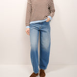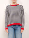 TENSIONE IN - MAGLIA GIROCOLLO RIGHE - CELESTE/LATTE/MORO