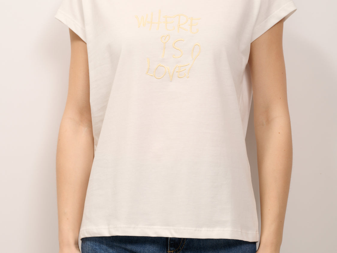 VICOLO - T-SHIRT SCRITTA WHERE IS LOVE - BIANCO