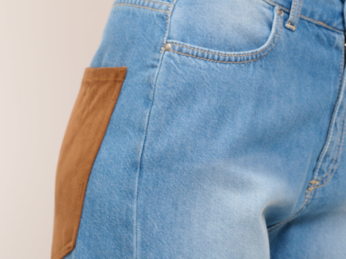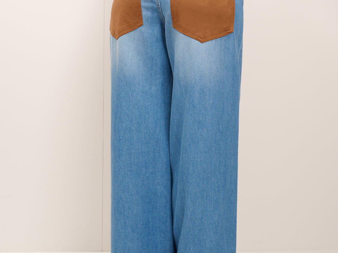 TENSIONE IN - JEANS LARGO TASCA CAMOSCIO - DENIM