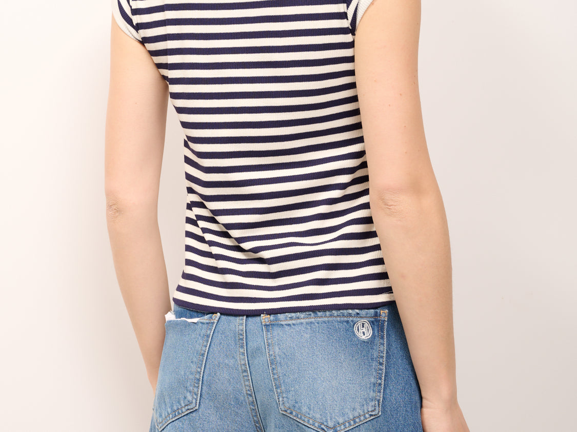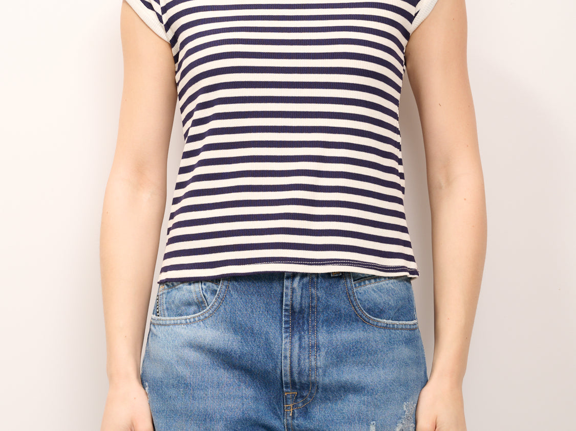 TENSIONE IN - T-SHIRT COSTINA RIGATA - PANNA/BLU