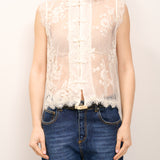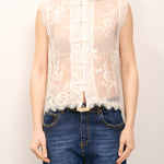 TENSIONE IN - CAMICIA ASIATICA PIZZO S/MANICA - NATURALE