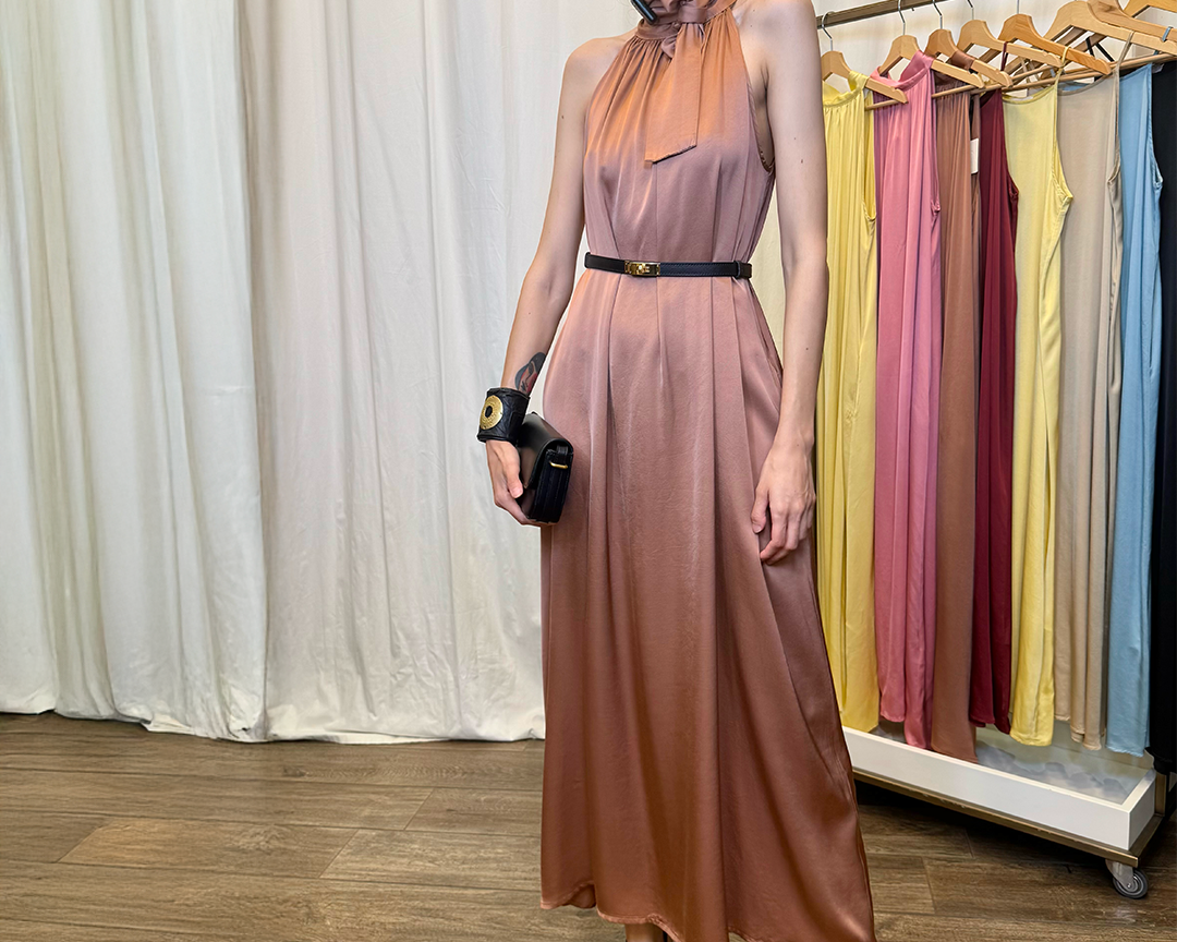 Raffinato, sensuale, perfetto per brillare di notte. L’abito satin con scollo all’americana firmato Vicolo nella tonalità bronzo avvolge la silhouette con un effetto luce cangiante che cattura ogni sguardo. Completano il look accessori decisi in total black: cintura Identity con chiusura lucchetto, slingback in raso Divine Follie e l’iconica Butterfly Bag di Vicolo. Un equilibrio perfetto tra glamour e grinta, disponibile ora su Blackoutroma per chi ama distinguersi con stile.