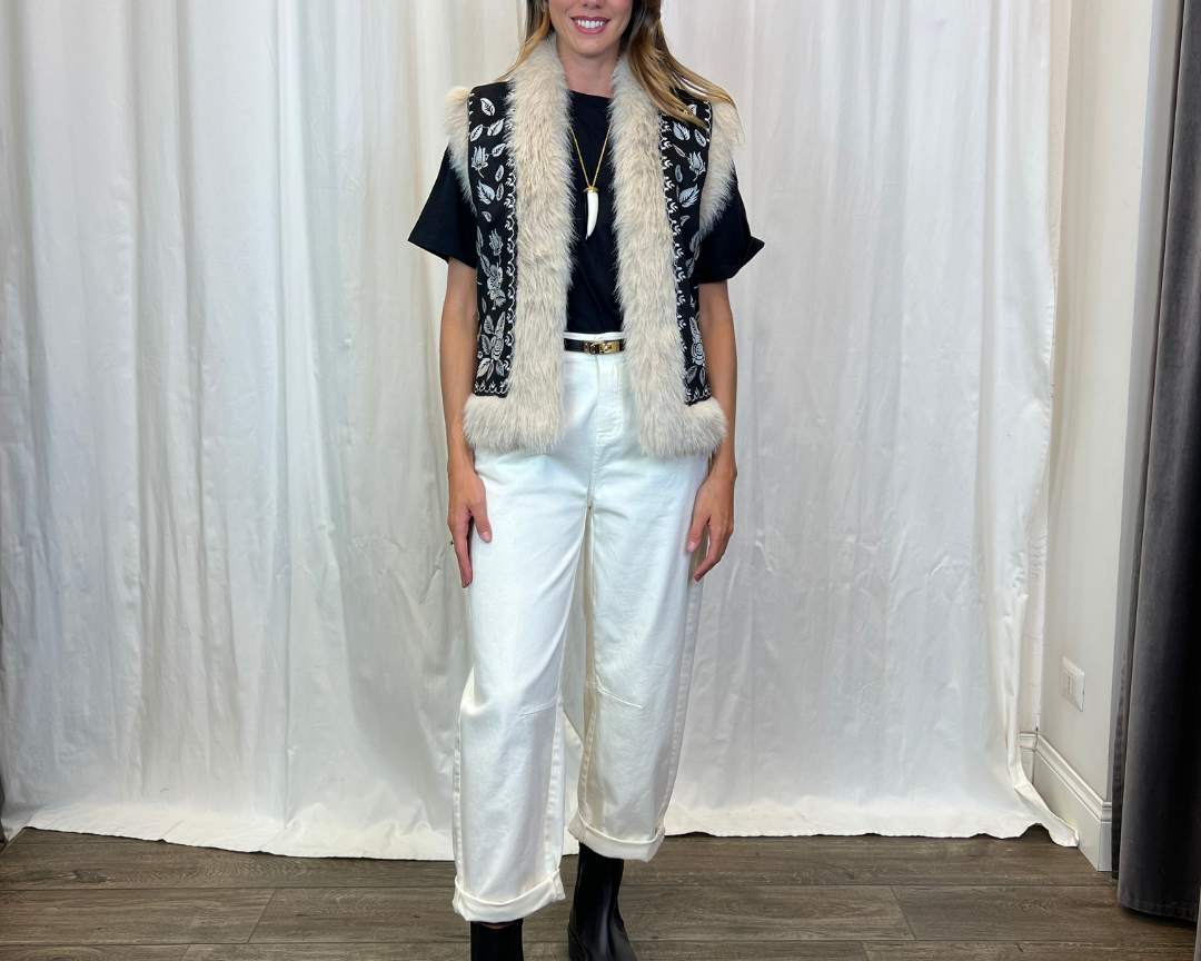 Riscopri il fascino dello street style con questo outfit versatile. Il gilet in suede con bordo ecopelliccia nero Dixie e il pantalone jeans Ovetto Tensione In Meringa incontrano le scarpe biker Divine Follie, dando vita a un look deciso e contemporaneo. Perfetto per chi ama mixare texture e dettagli strong senza rinunciare al comfort. Ordina subito i capi su blackoutroma e porta la tua urban attitude al livello successivo.