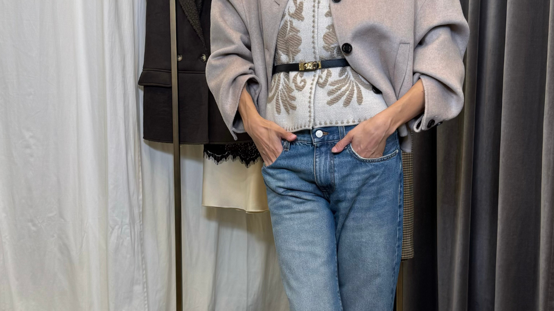 Un equilibrio tra tradizione e contemporaneità: la giacca over handmade Casha’ e il gilet ricamato off-white di Tensione In incontrano i jeans boyfit Zeke per un look deciso e versatile. La cintura con fibbia lucchietto e i mocassini neri Divine Follie completano un outfit pensato per chi ama distinguersi con eleganza urbana. Perfetto per il back-to-office o per un aperitivo metropolitano, questo ensemble è un must della collezione A/I 2025 di BlackoutRoma.