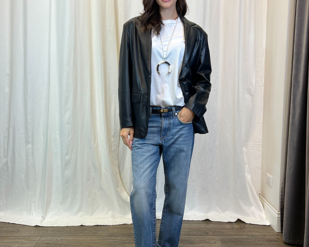 L’essenza del nero, reinterpretata in chiave contemporanea. La giacca over in vera pelle Vicolo domina la scena con linee decise e allure ribelle, mentre la t-shirt satin color burro dona equilibrio e luce. I jeans Emy in denim disegnano una silhouette pulita e versatile, chiusa dai mocassini Divine Follie per un tocco di classe effortless. È un outfit che trasforma la semplicità in forza visiva — ideale per chi vive la città con ritmo, carisma e consapevolezza del proprio stile. Scoprilo e acquistalo su BlackOut Roma.
