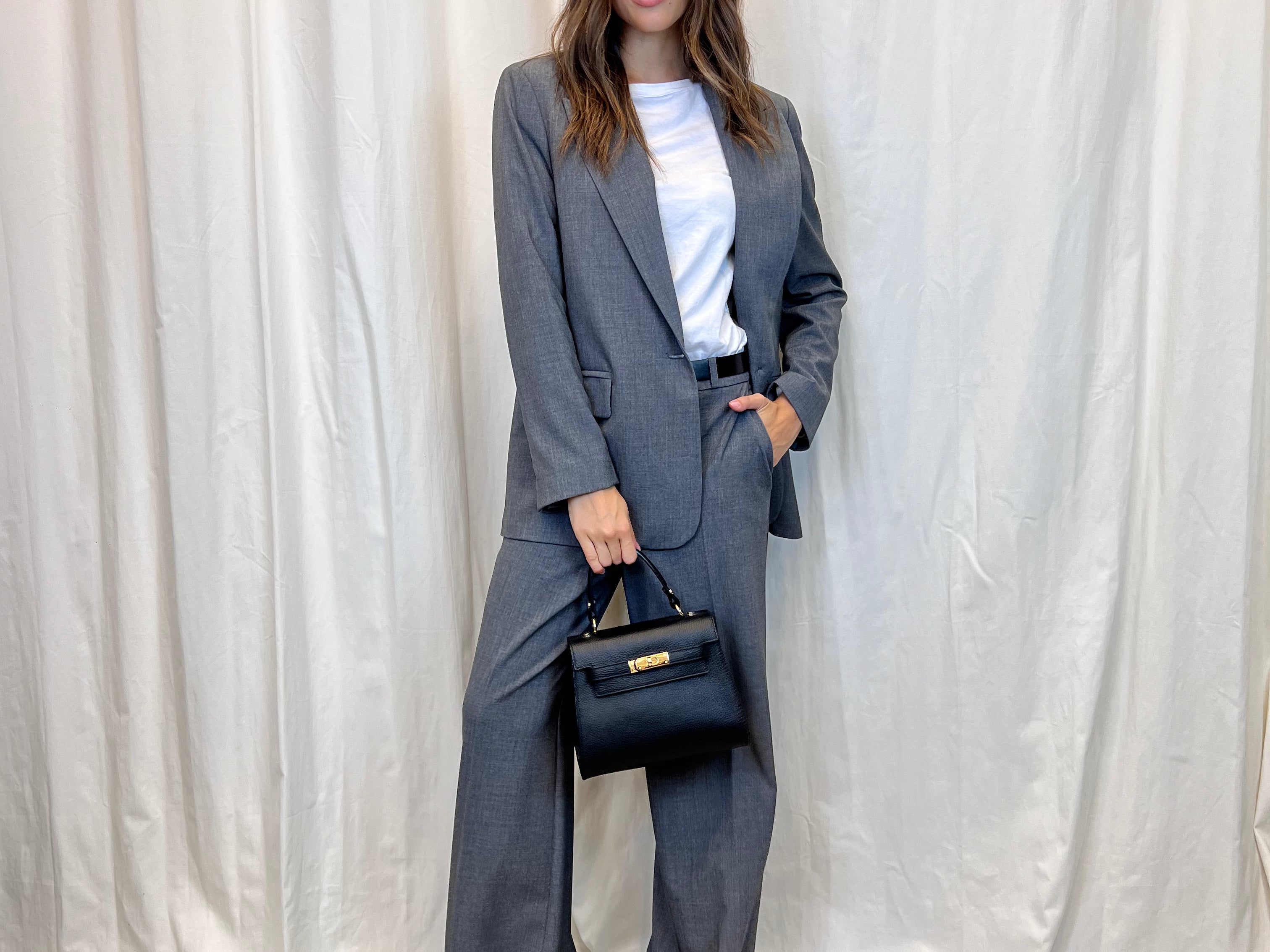 L'outfit Back to Office combina eleganza e comfort: blazer sartoriale e pantaloni ampi per un look raffinato e contemporaneo che accompagna il tuo rientro al lavoro con stile.